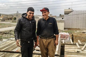 Bader (Right) Smiles With A Friend At A Job Site Where He His Business Has Been Contracted / IRAQ